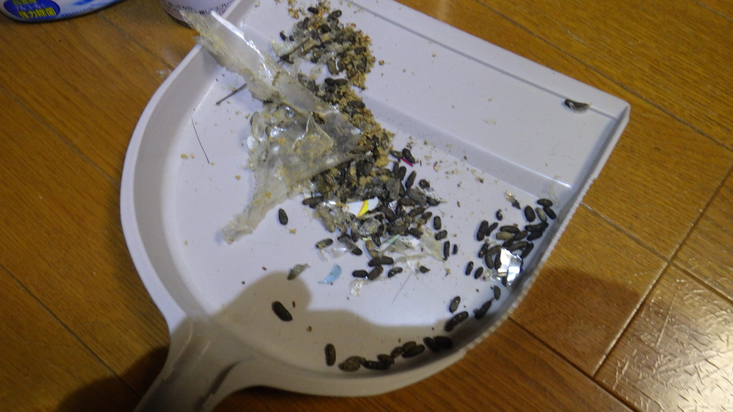 この後あまりの散乱しているネズミ糞を取り除きました。